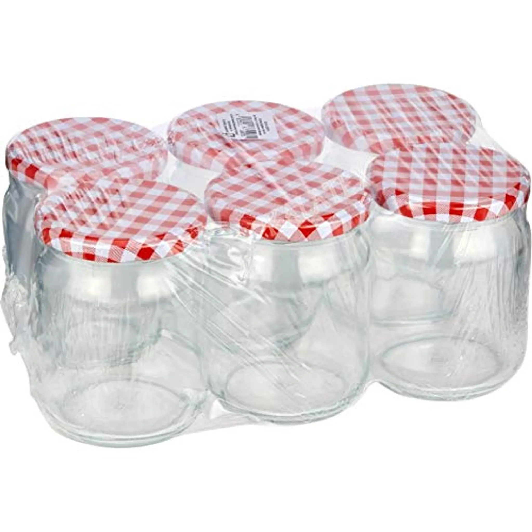 6er Set Einmachgläser 320 ml – Mit kariertem Twist-Off Schraubdeckel