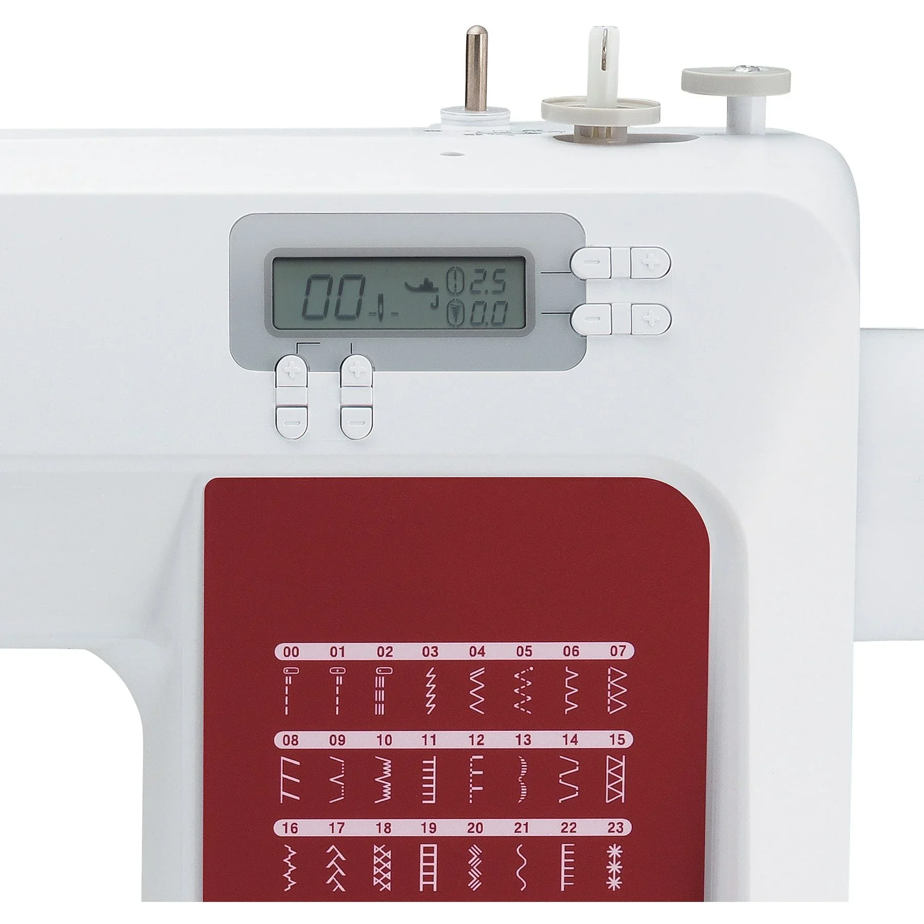 Highlights: Freiarmnähen, Einfädelhilfe, Unterfaden-Schnellautomatik, Rückwärtsnähen, einstellbare Fadenspannung, LED-Beleuchtung, Aufspulautomatik sowie verschiedene Betriebsmodi für komfortables Arbeiten.