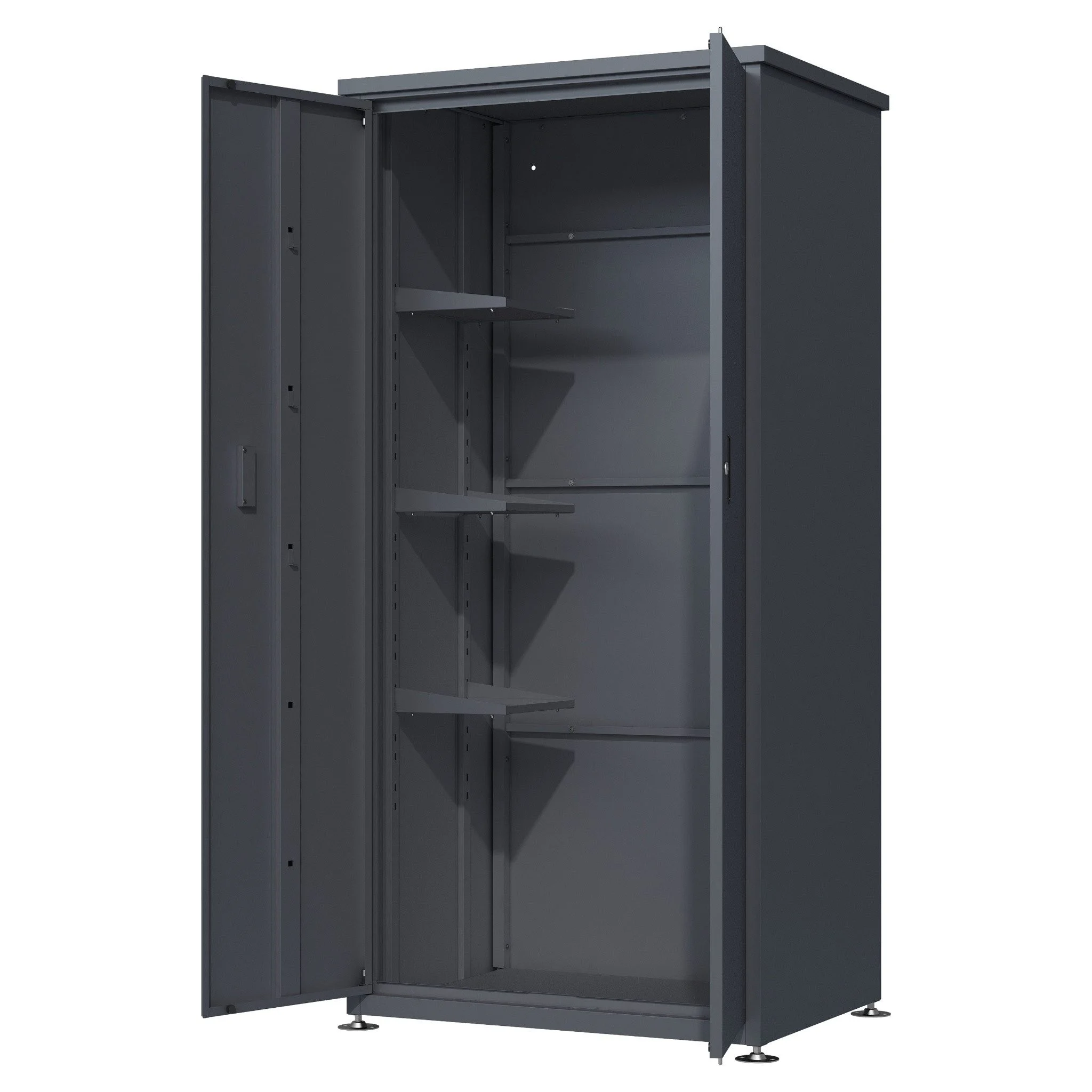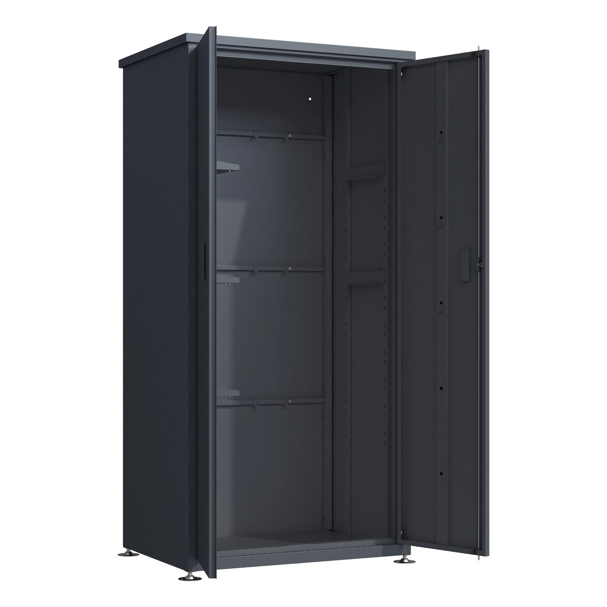 Highlights: Wetterfester Gartenschrank aus robustem Stahl, abschließbare Türen, flexible Innenaufbewahrung, rostfreie Beschläge, optimaler Stauraum für Werkzeuge und Zubehör, verstellbare Standfüße.