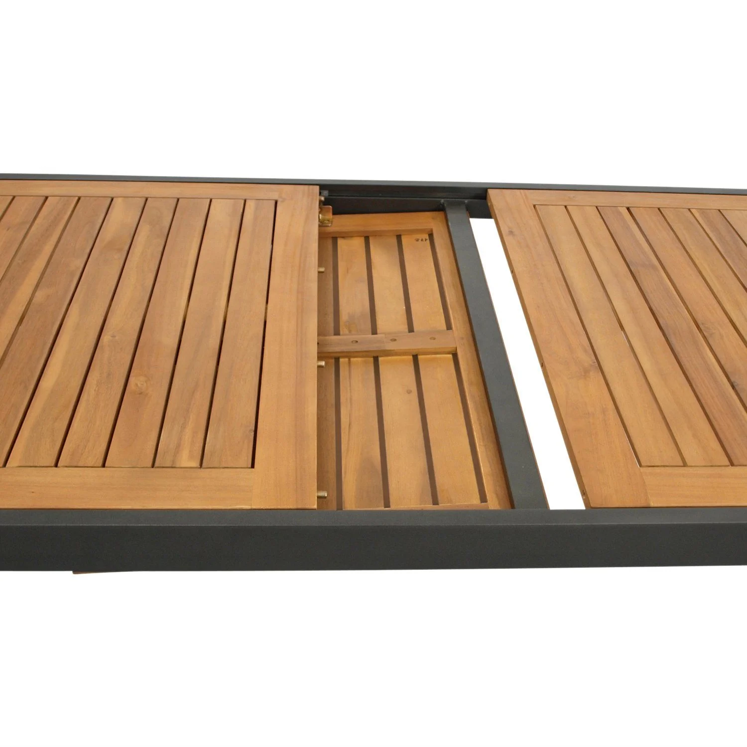 Highlights: Flexibles Ausziehsystem, hochwertige Akazienholzplatte, modernes Aluminiumgestell, komfortable Nutzung für kleine und große Runden, langlebig und pflegeleicht.