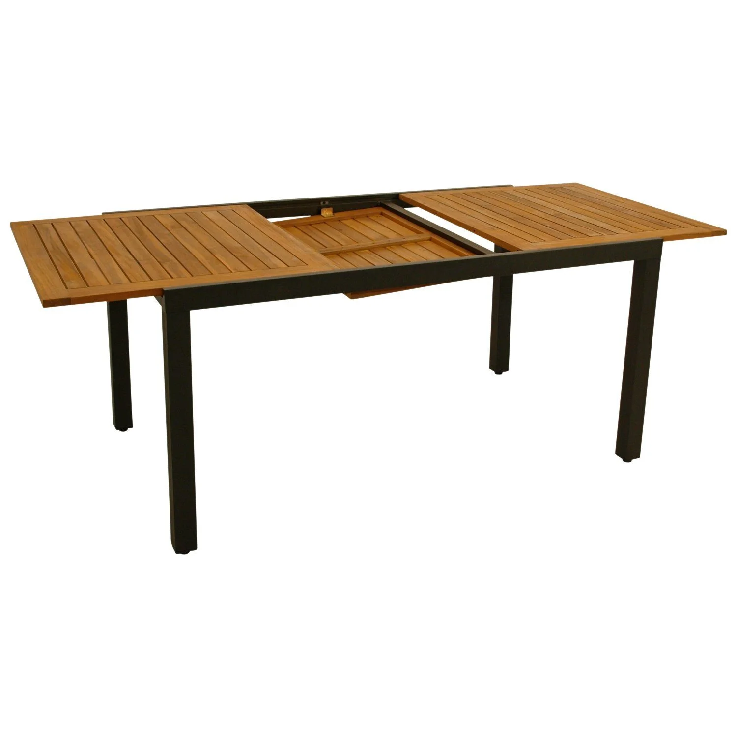 DEGAMO Gartentisch MILOS – 150×90 cm, ausziehbar auf 200 cm, Aluminium Anthrazit & Akazie