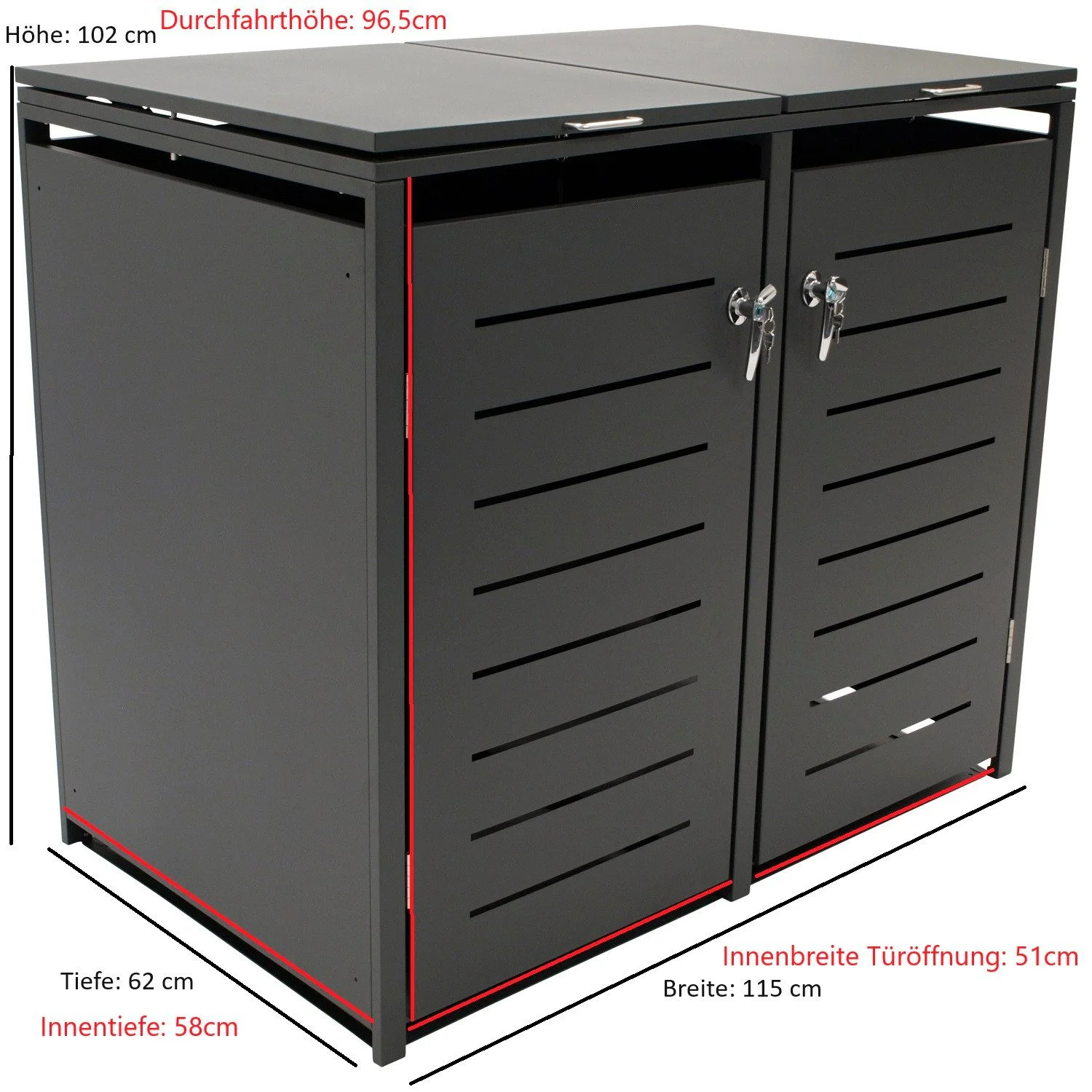 Produktinformationen "DEGAMO Mülltonnenbox KÖLN – Stahl Anthrazit für 2 × 120 l"