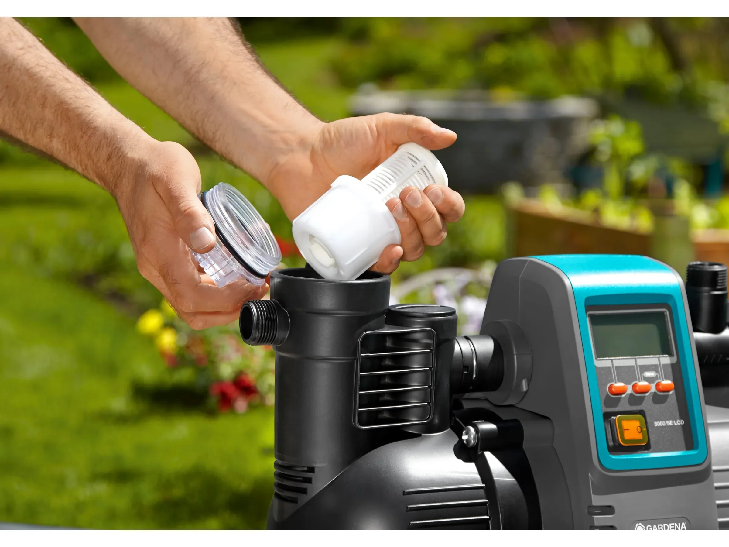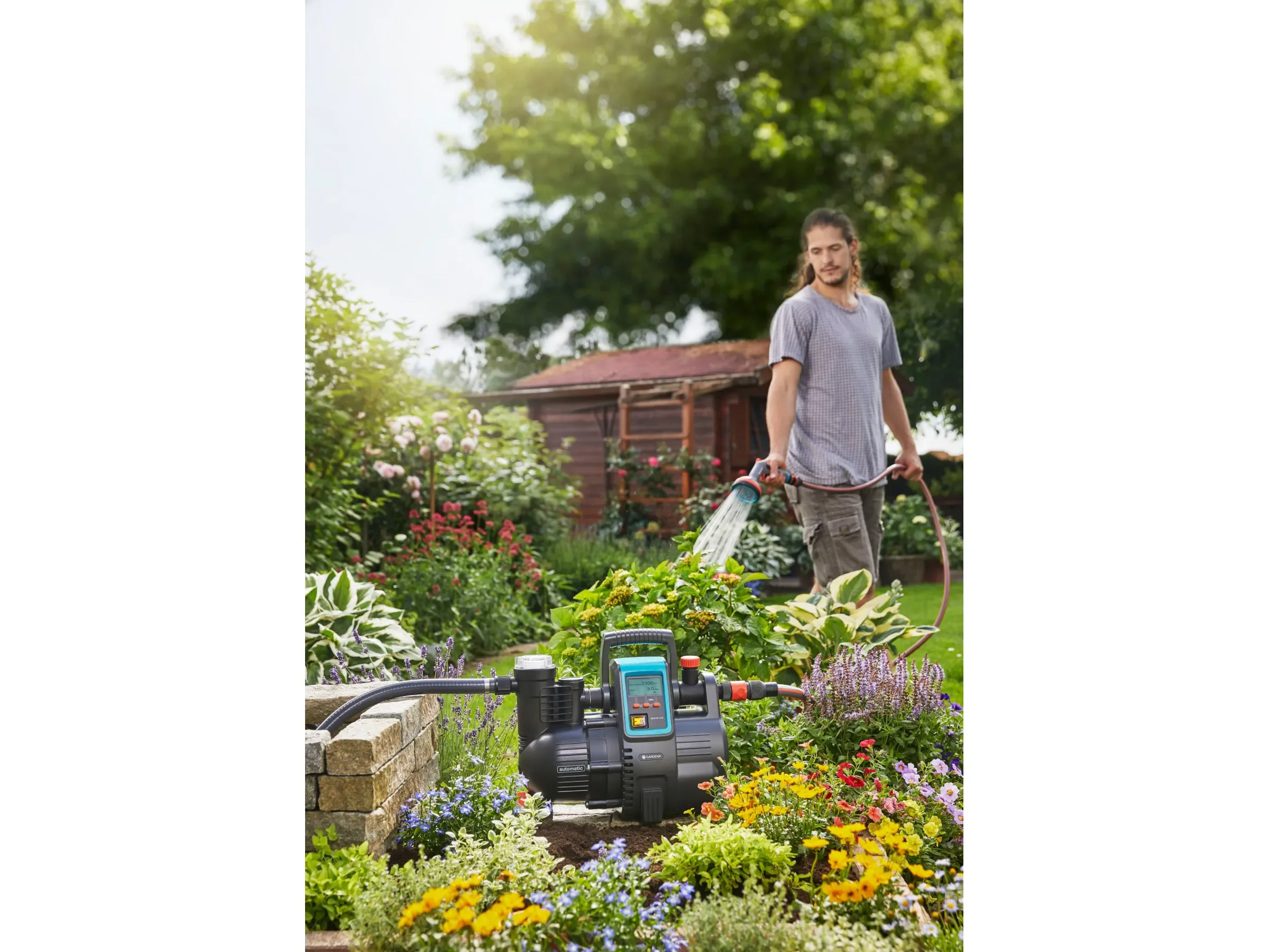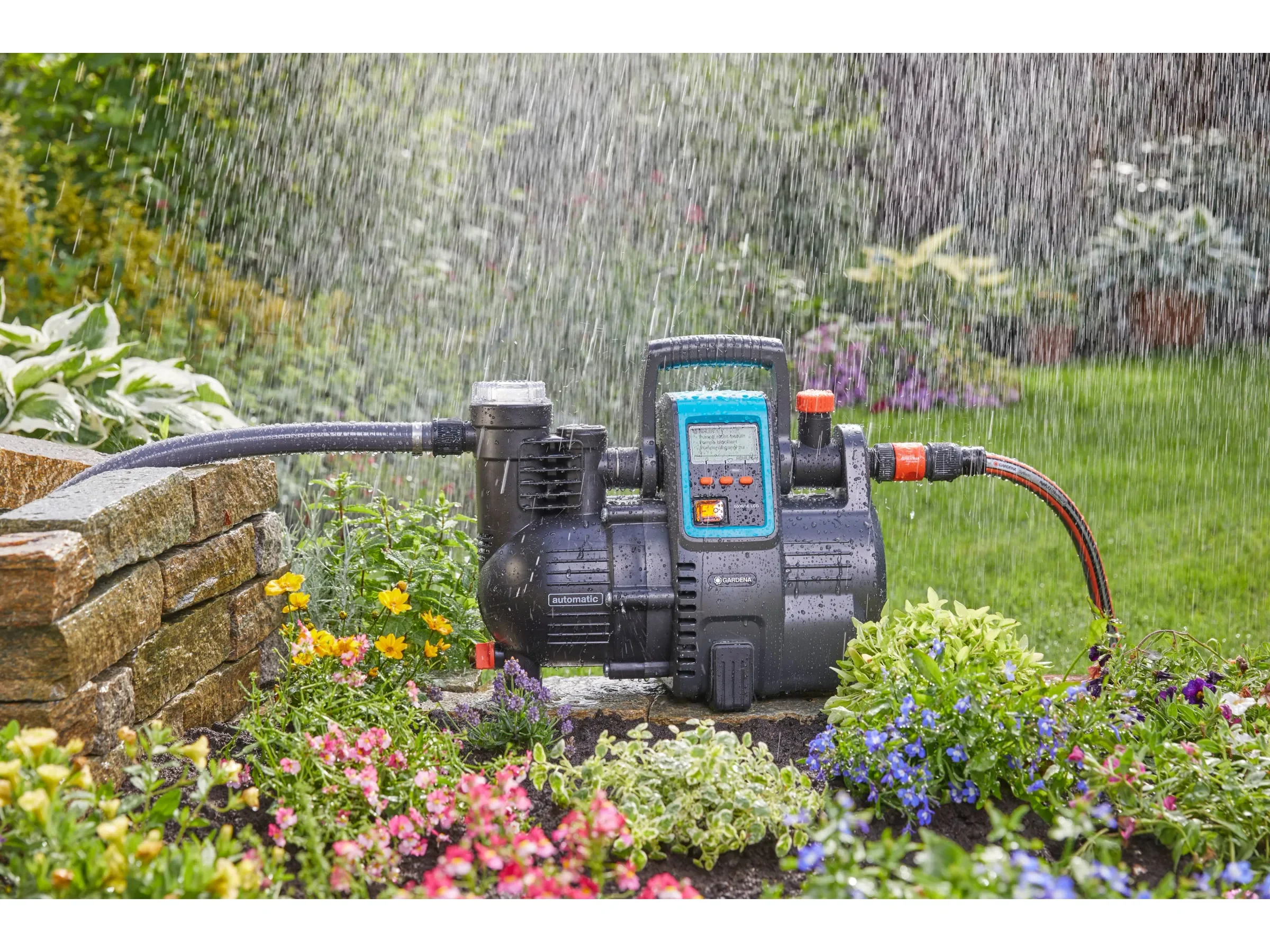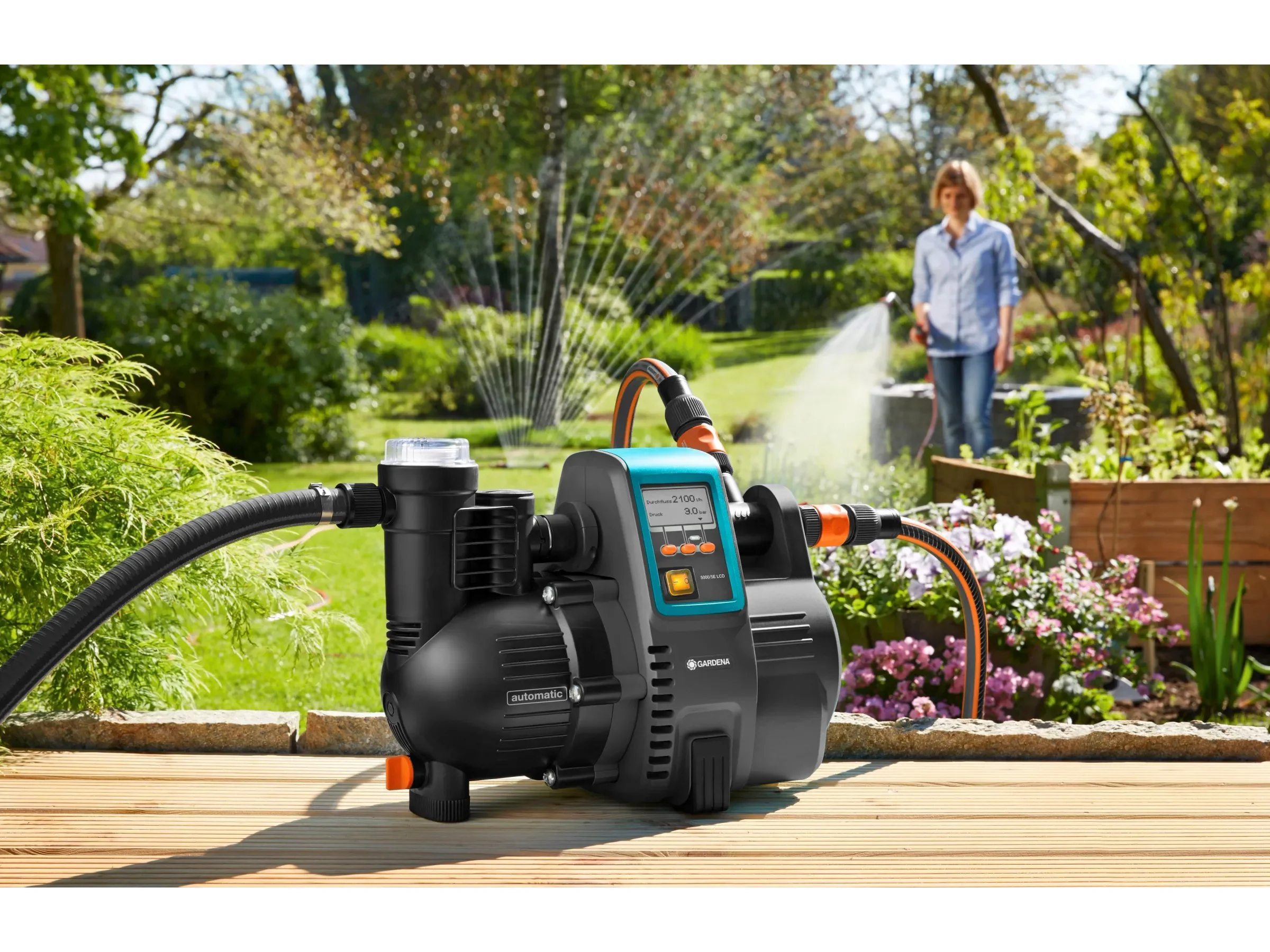 Der Gardena Garten- & Hauswasserautomat 5000/5 LCD ist eine komfortable Lösung, um Haus und Garten zuverlässig mit Regen- oder Brunnenwasser zu versorgen. Ideal, wenn Sie im Haushalt Wasser einsparen möchten – zum Beispiel für die Versorgung von Toilette oder Waschmaschine – und gleichzeitig eine leistungsstarke Pumpe für die Gartenbewässerung benötigen.