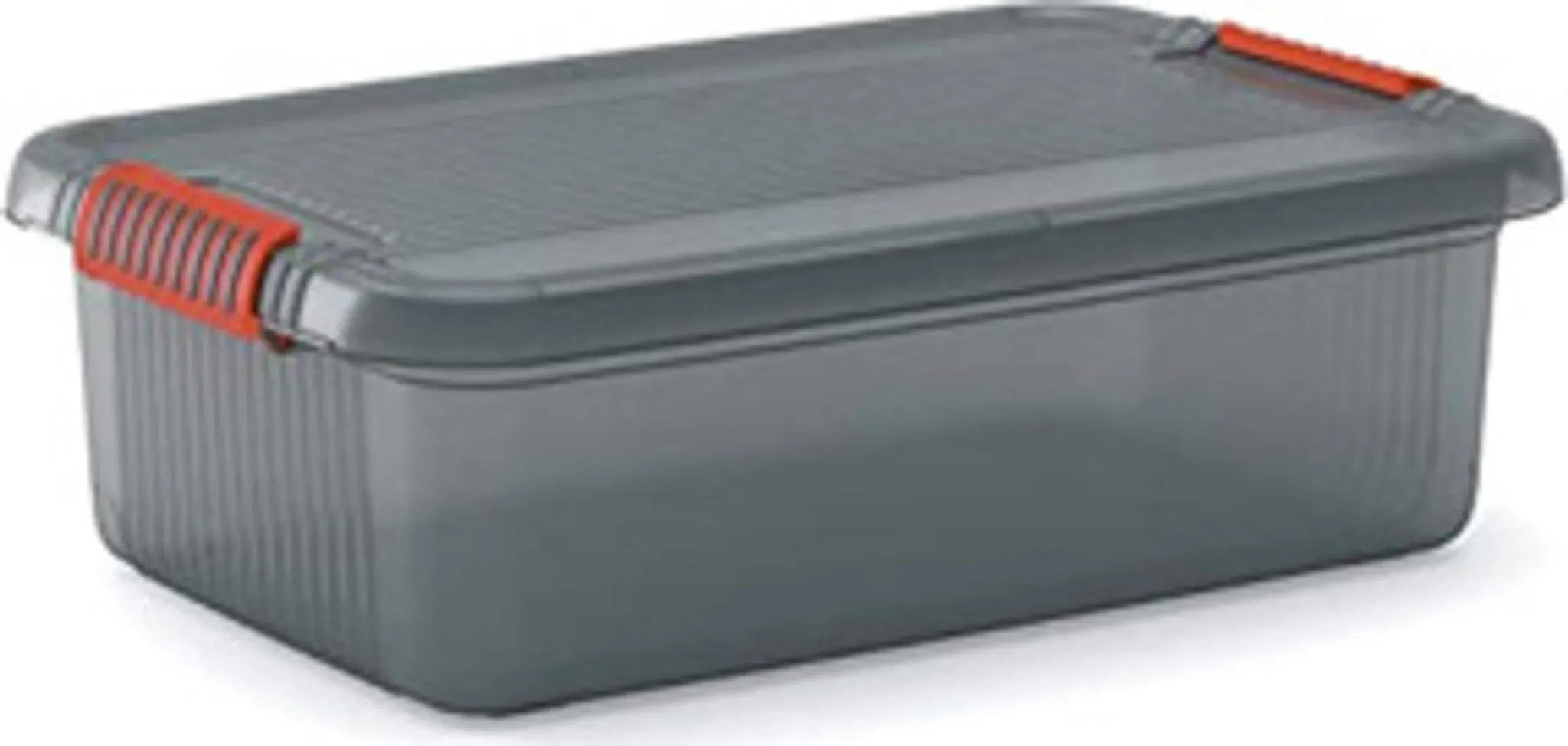 Produktinformationen "Kis K Latch Aufbewahrungsbox M mit Deckel – 28 Liter – Transparent/Orange – Stapelbar"