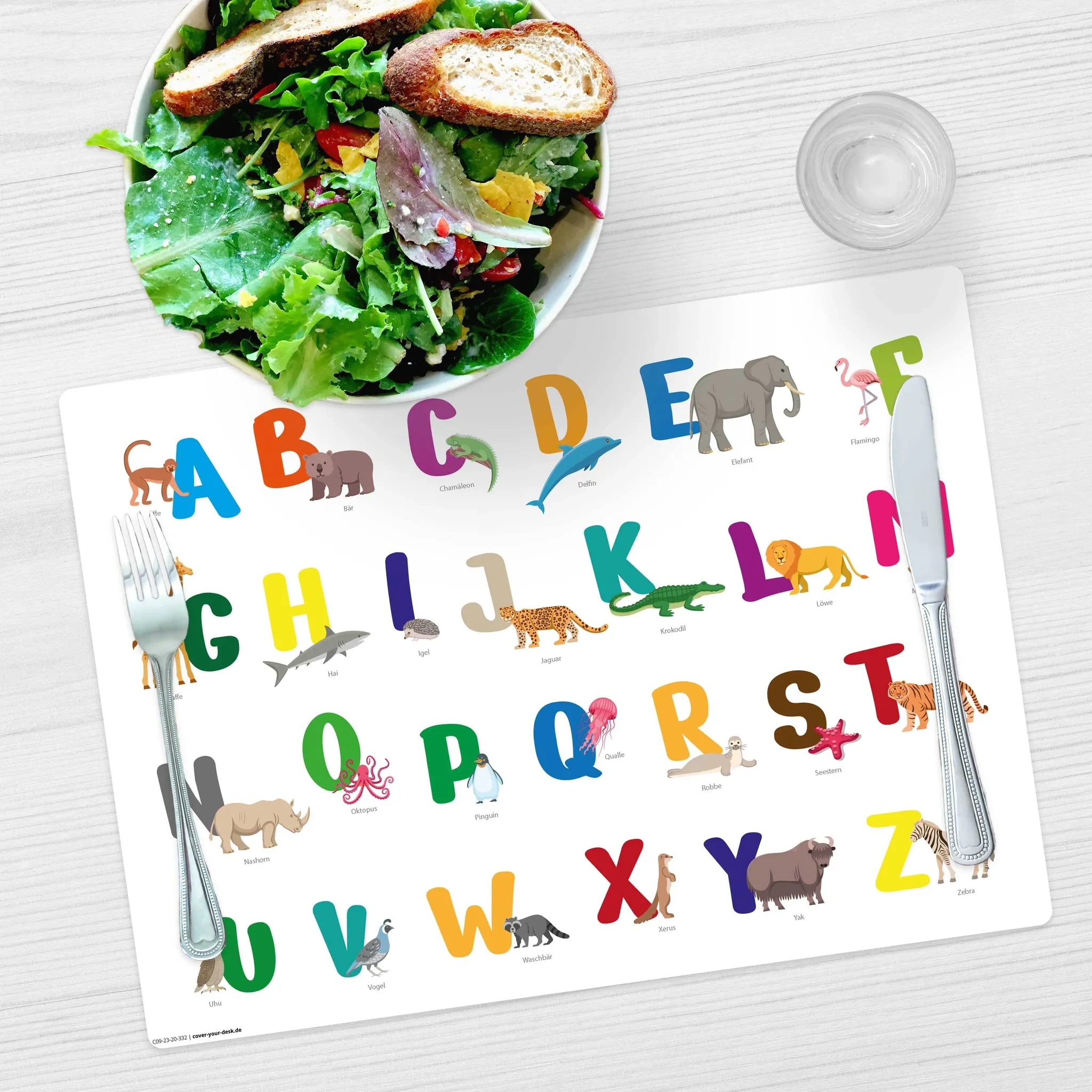 Tischset für Kinder • Buntes ABC mit Tieren • abwaschbar • 44 x 32 cm • Premium Vinyl