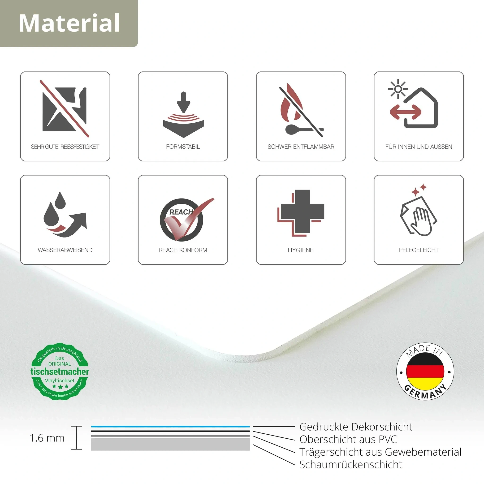 Das Tischset besteht aus strapazierfähigem Premium-Vinyl, ist leicht abwaschbar, rutschhemmend und langlebig. Einfach nach dem Essen feucht abwischen – fertig!