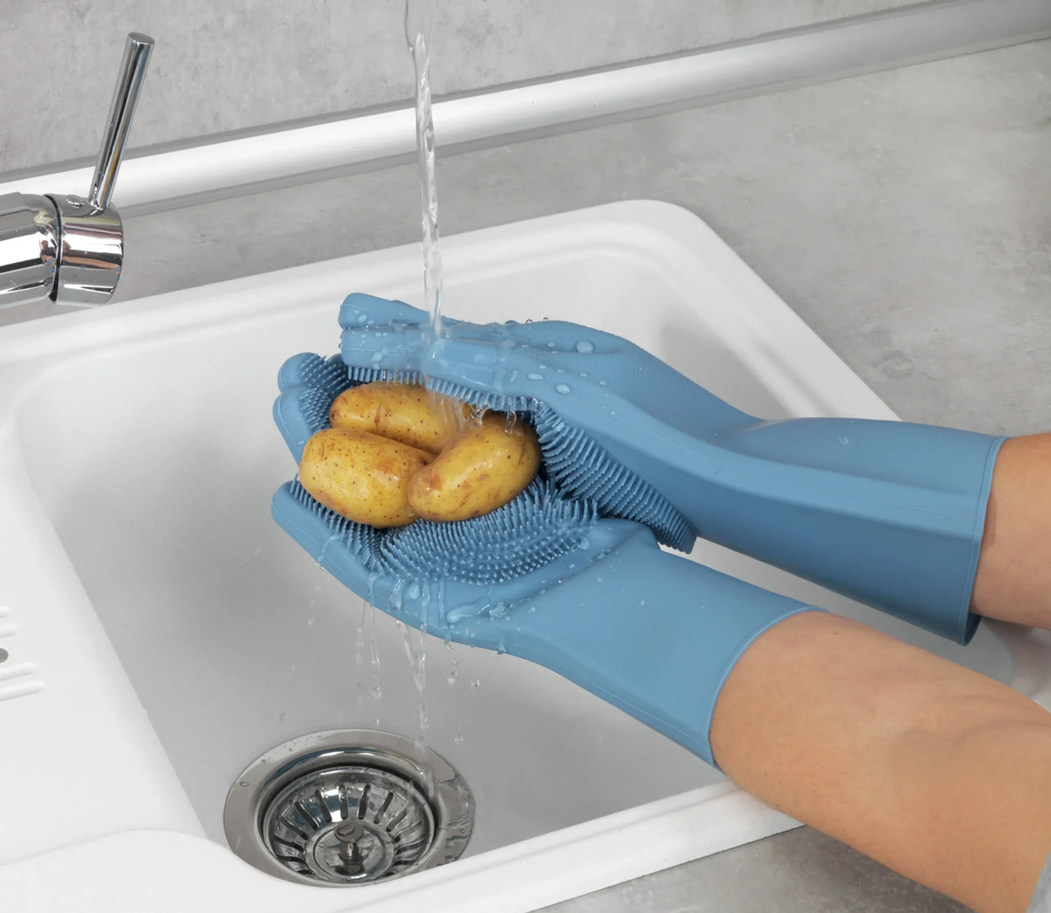 Das hochwertige Silikon ist pflegeleicht, hygienisch und kann zur Reinigung einfach in die Spülmaschine. Dank rutschfester Haptik liegen die Handschuhe sicher in der Hand; integrierte Aufhängösen sorgen für schnelles Trocknen und griffbereite Aufbewahrung.