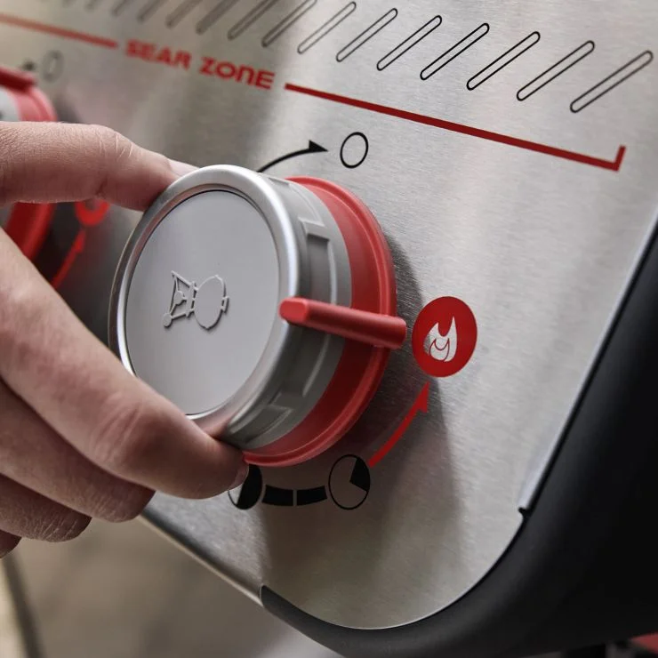 Tipp: Nutzen Sie den Seitenkocher für Sauce oder Gemüse, während das Hauptgericht auf dem Grill liegt. Für kräftige Röstaromen zuerst mit Sear Boost scharf anrösten und anschließend in einer moderaten Zone fertig garen – das Digital-Thermometer hilft, die Temperatur stabil zu halten.