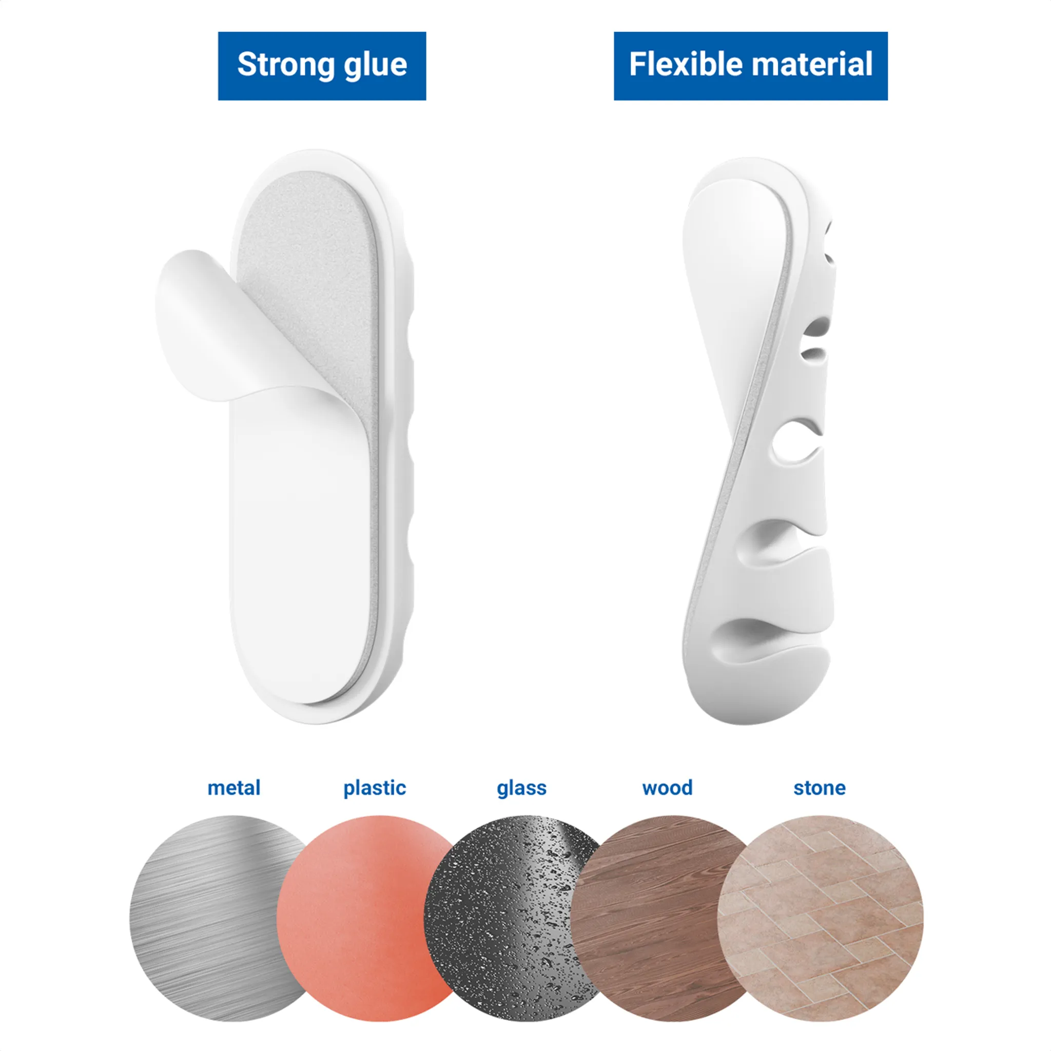 Dank der starken Klebefläche haften die Clips sicher auf glatten Oberflächen wie Kunststoff, Holz, Glas oder Metall. Sie eignen sich zum Bündeln, Ordnen und Führen von USB-Kabeln, Ladekabeln, Netzteilen, dünnen Leitungen und mehr.