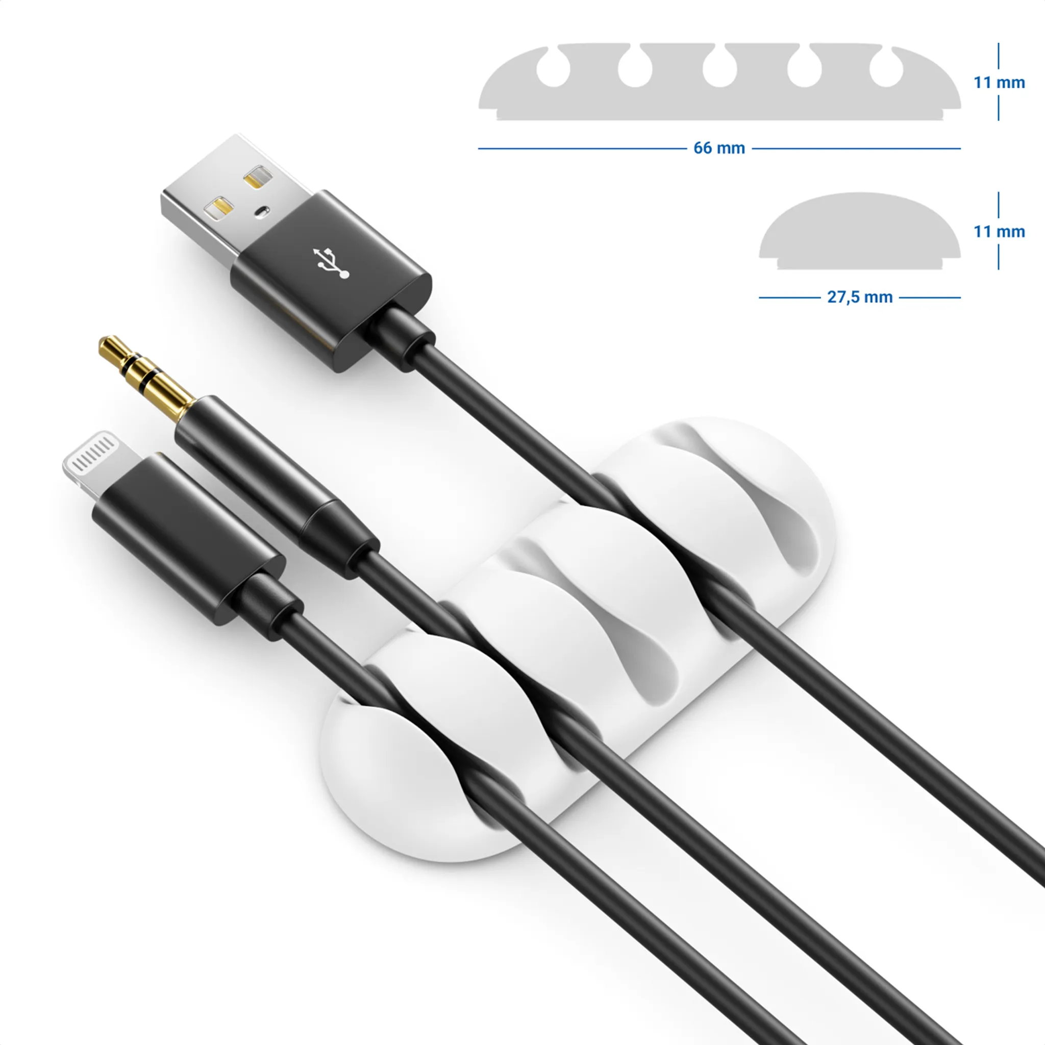 Highlights: Schluss mit Kabelsalat, flexibel einsetzbar, starke Haftung, ideal für Schreibtisch & Medienplatz, ordentliche Kabelführung.