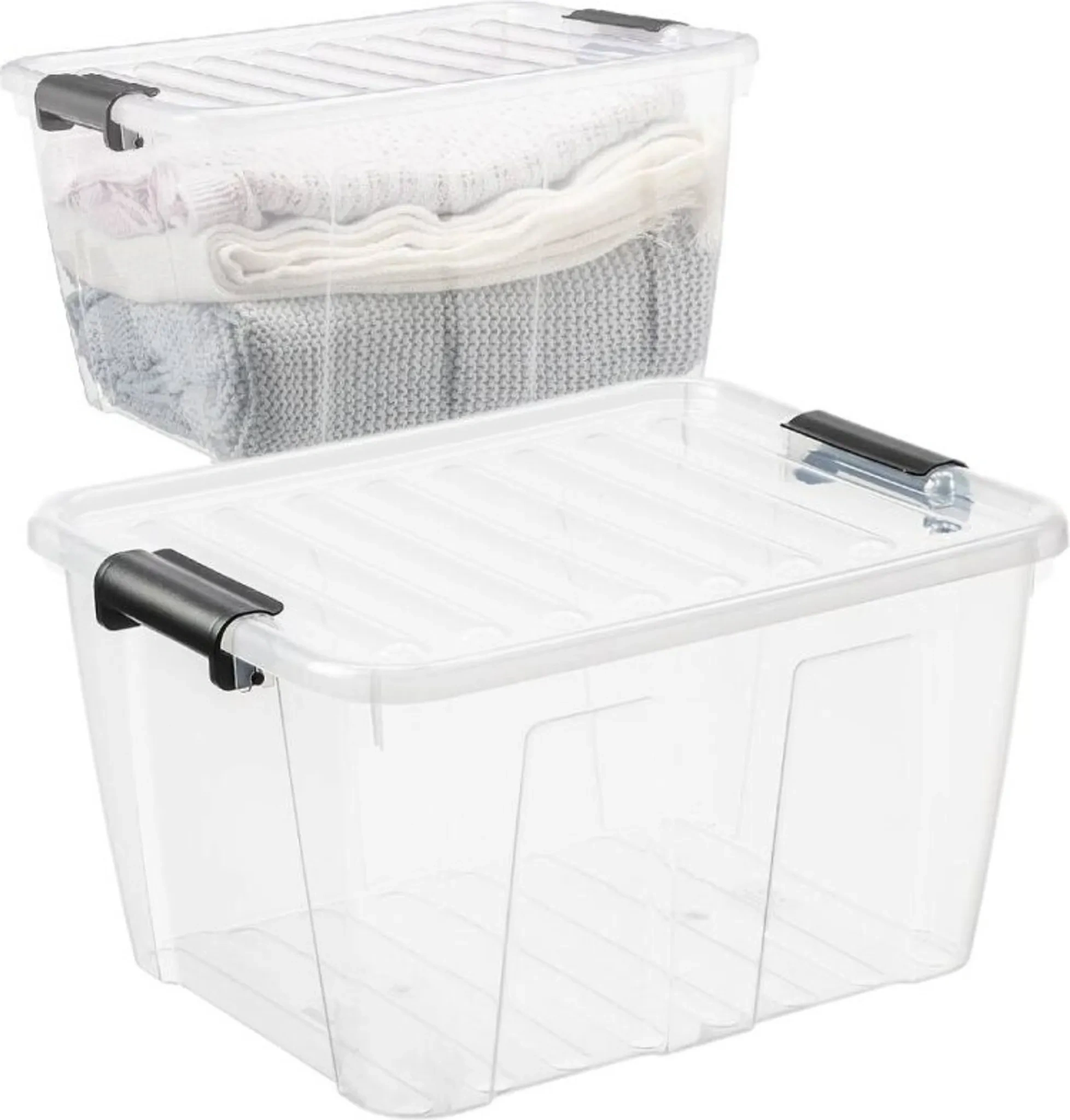 Lieferumfang: 1 × Aufbewahrungsbox 30L mit Deckel & Clipverschlüssen.