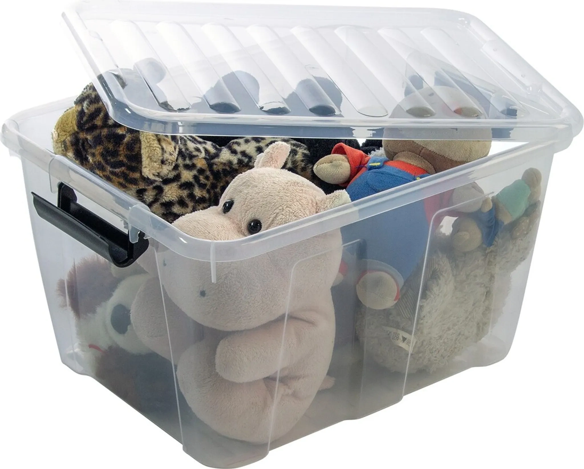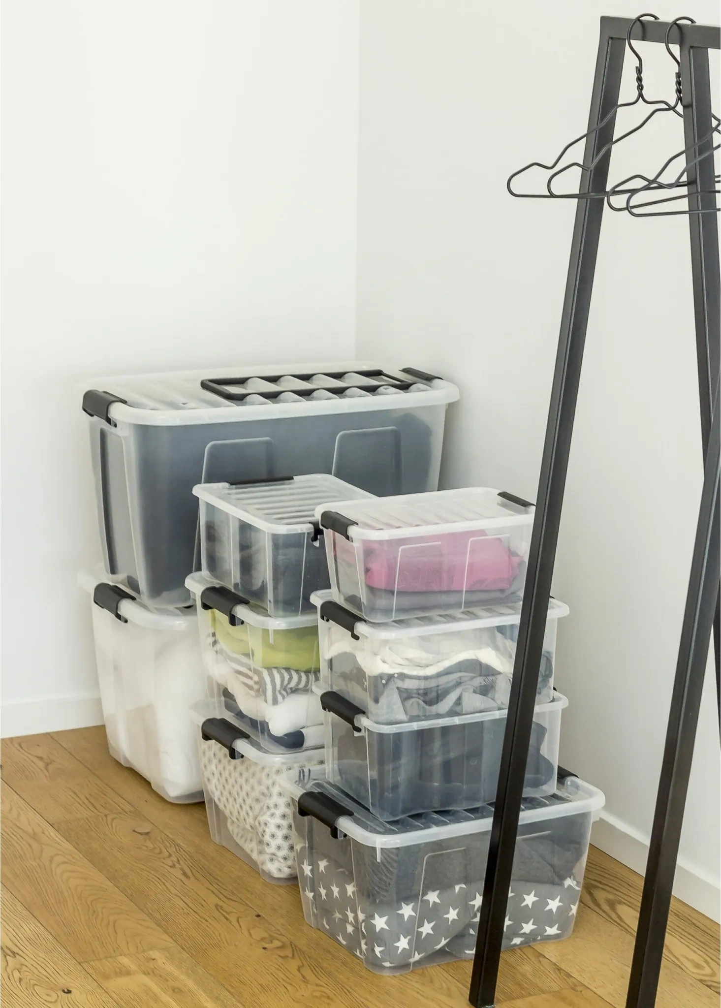 Mit der plast team HOME BOX 30L bringen Sie Ordnung in Ihr Zuhause – stilvoll, praktisch und langlebig. Die transparente Aufbewahrungsbox ermöglicht jederzeit einen schnellen Blick auf den Inhalt, während die starken Clipverschlüsse den Deckel sicher fixieren. Die spezielle Deckelkonstruktion mit Rillen sorgt dafür, dass mehrere Boxen stabil und rutschfest übereinander gestapelt werden können.